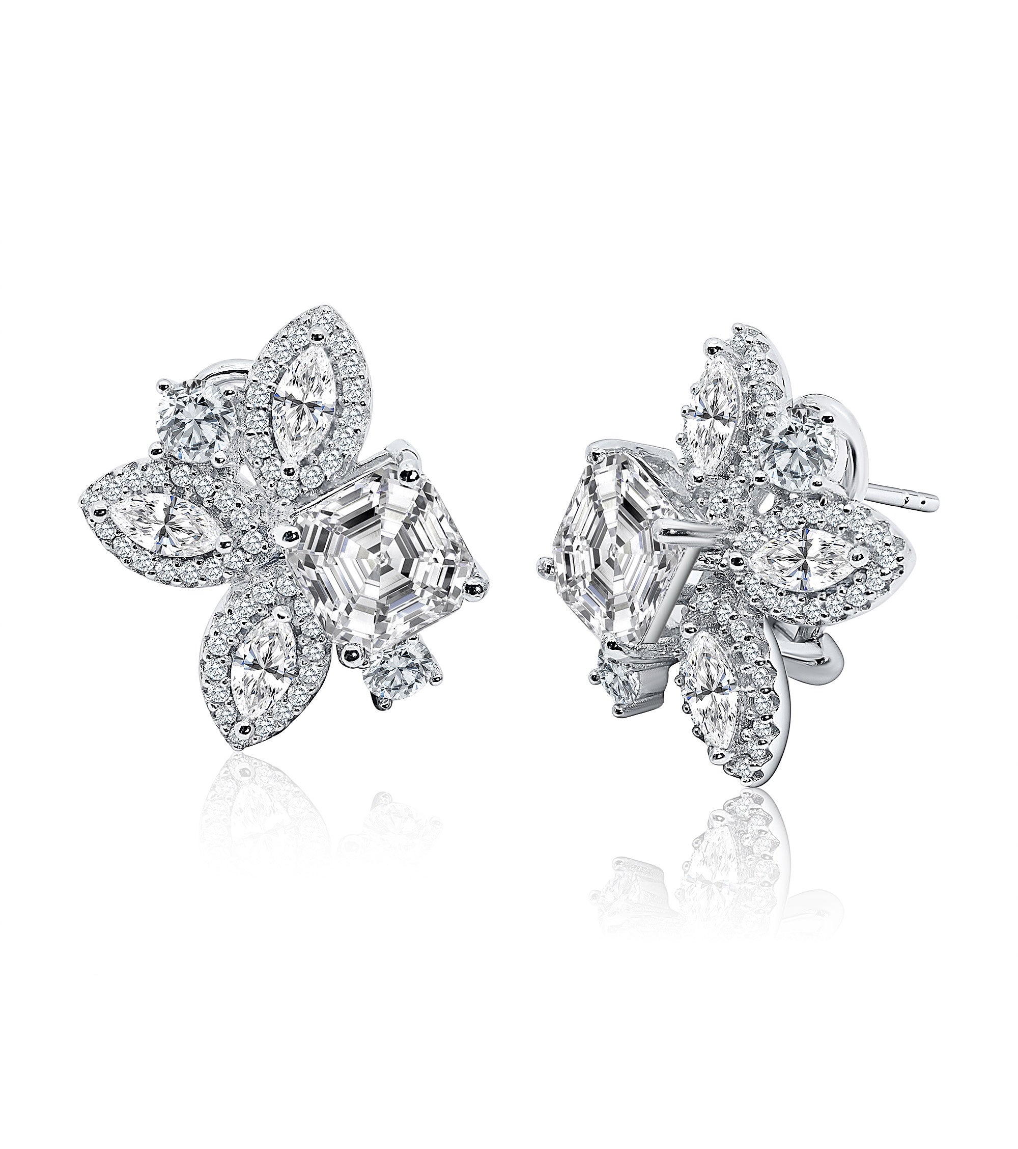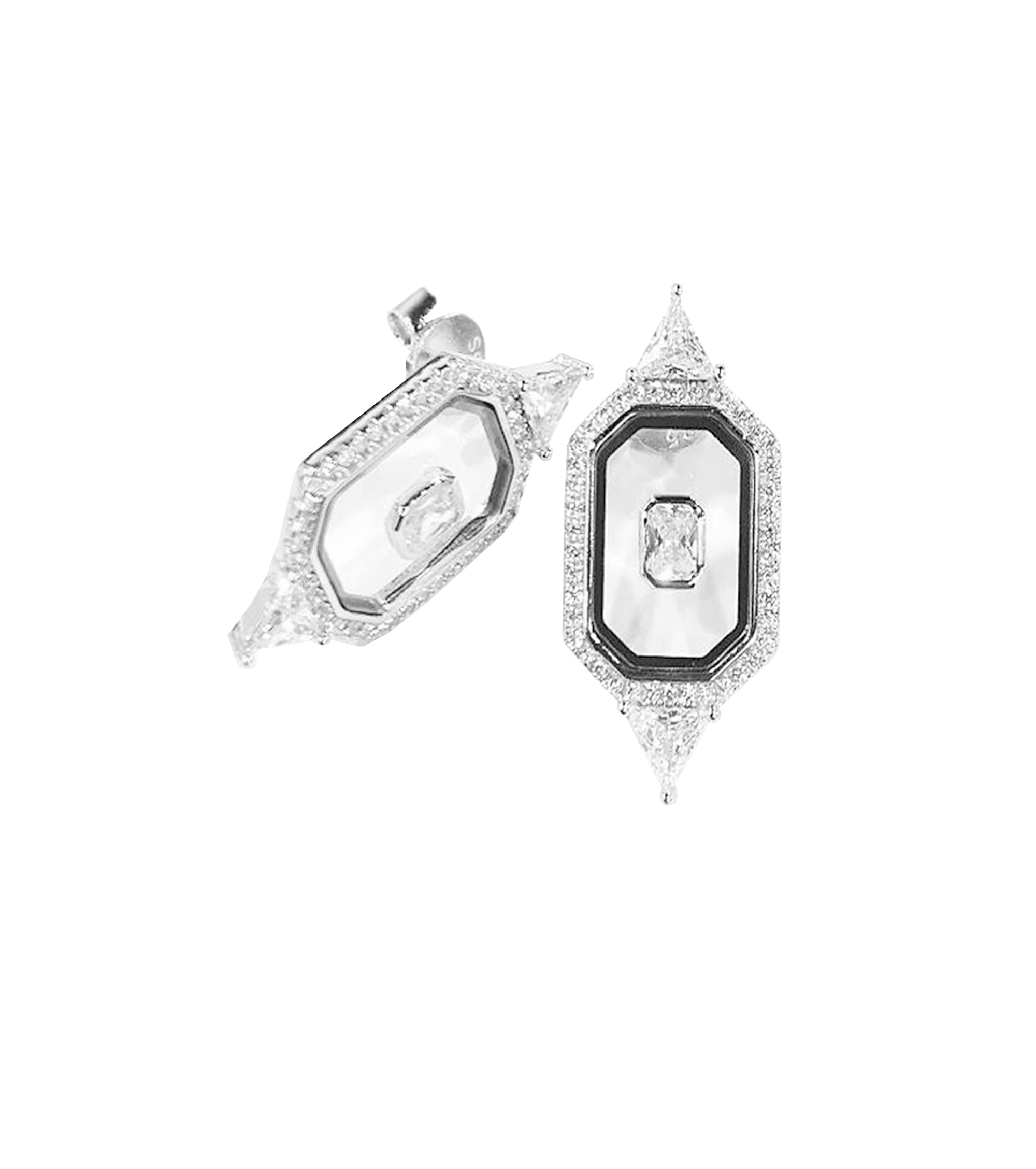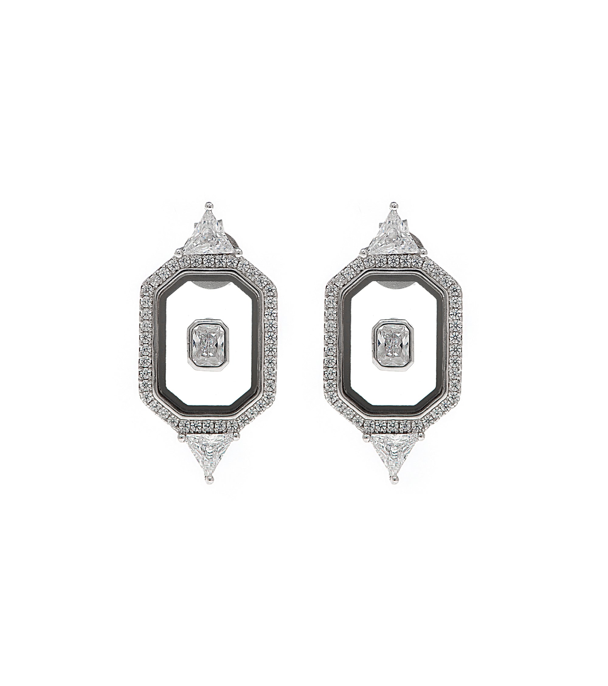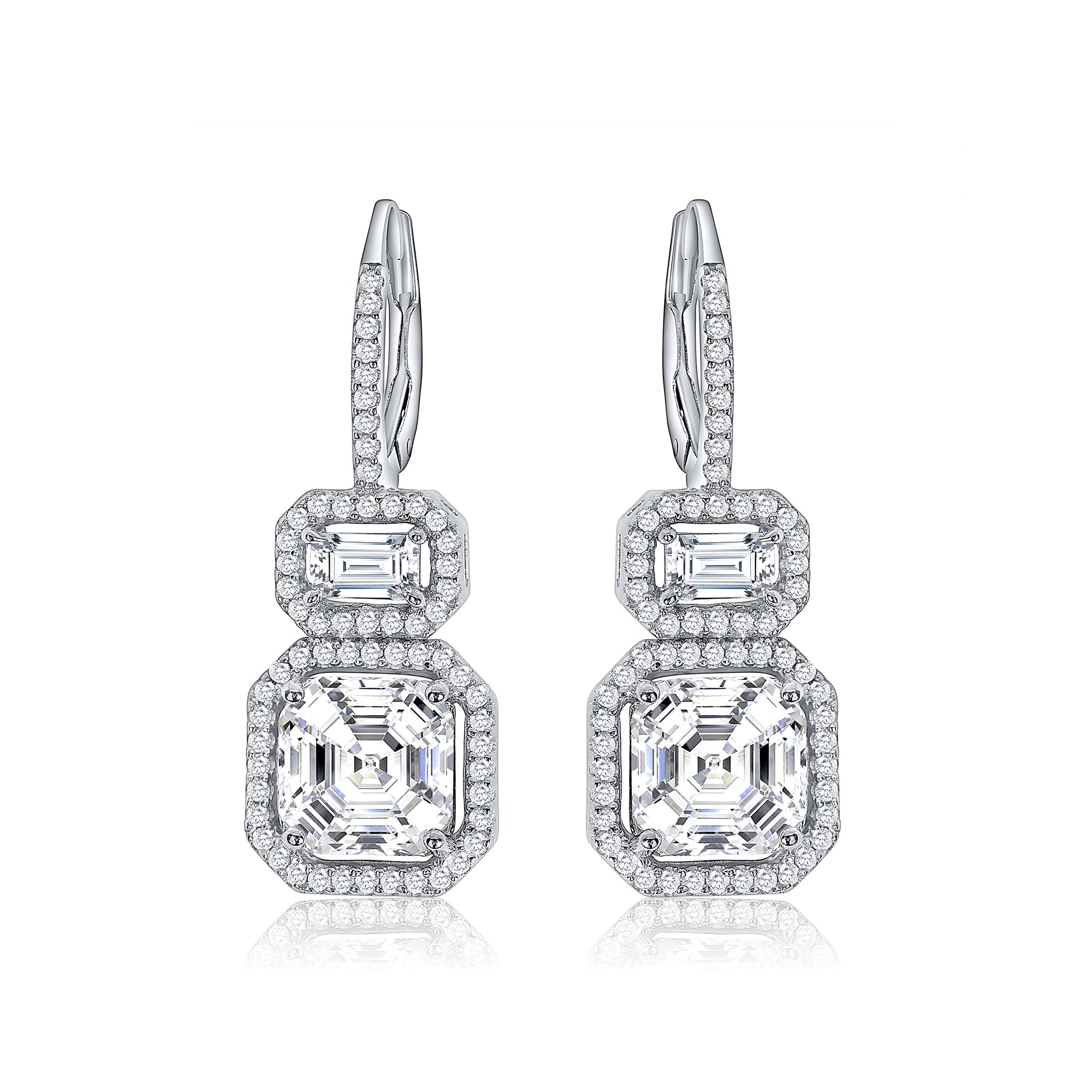 قرط أذن عمودي مثمن الشكل من زجاج شبكي من الزركونيوم المكعب