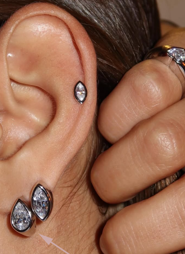 أقراط دائرية صغيرة متعددة الحواف على شكل قلب من الزركونيا المكعبة