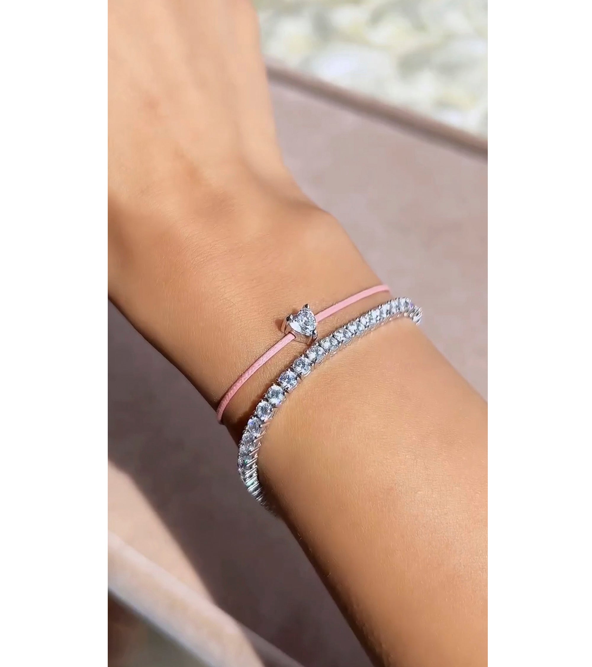 حبل مضفر من حجر الزركونيا المكعب الأبيض والوردي على شكل قلب B2971