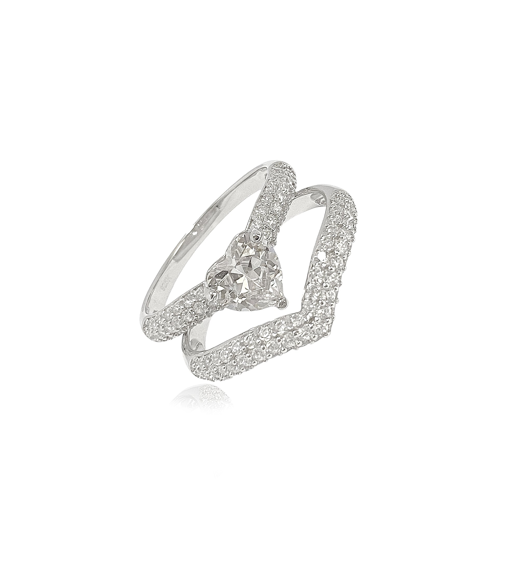 حلقات منحنية من قطعتين مرصعة بالزركونيوم على شكل قلب