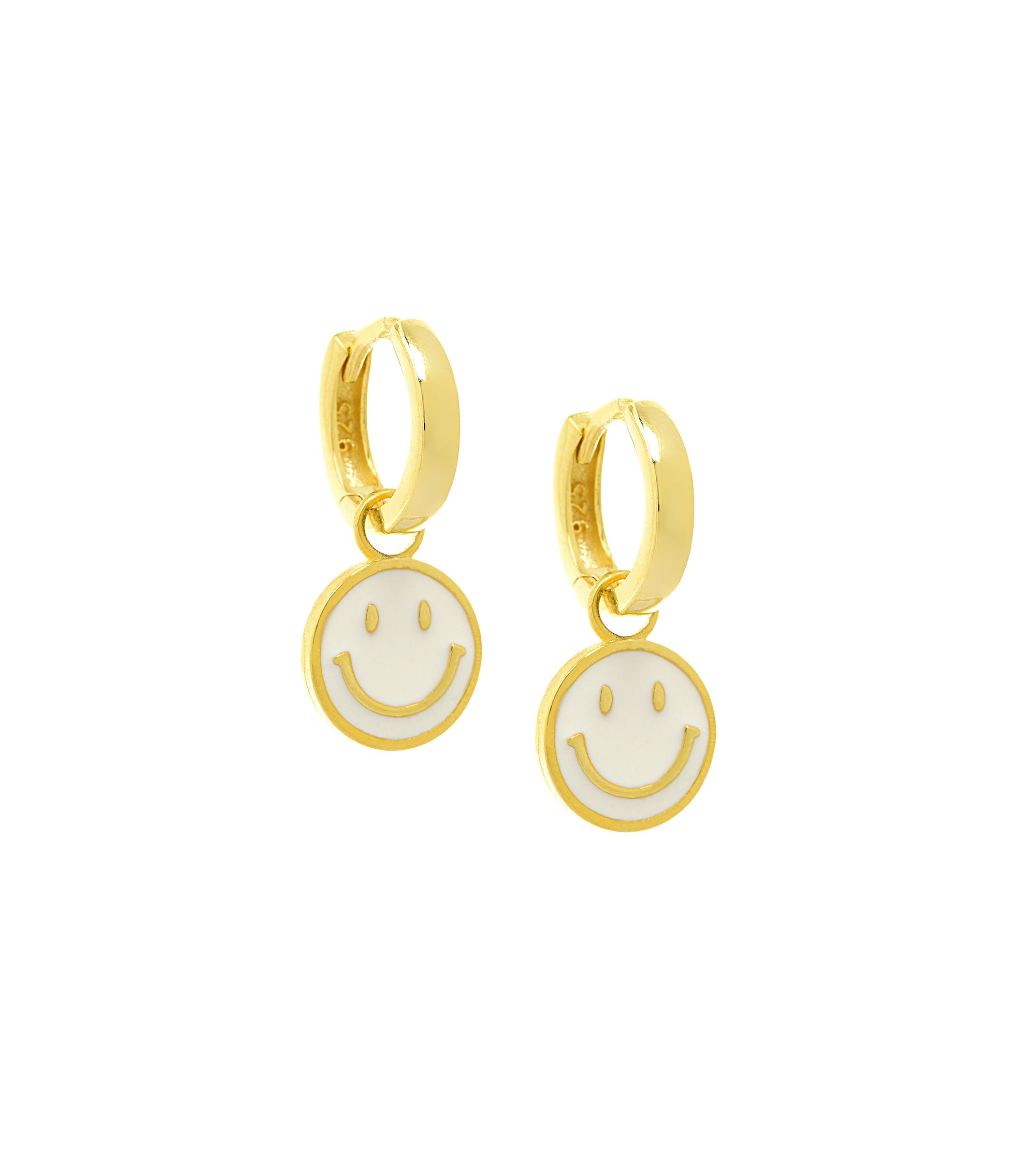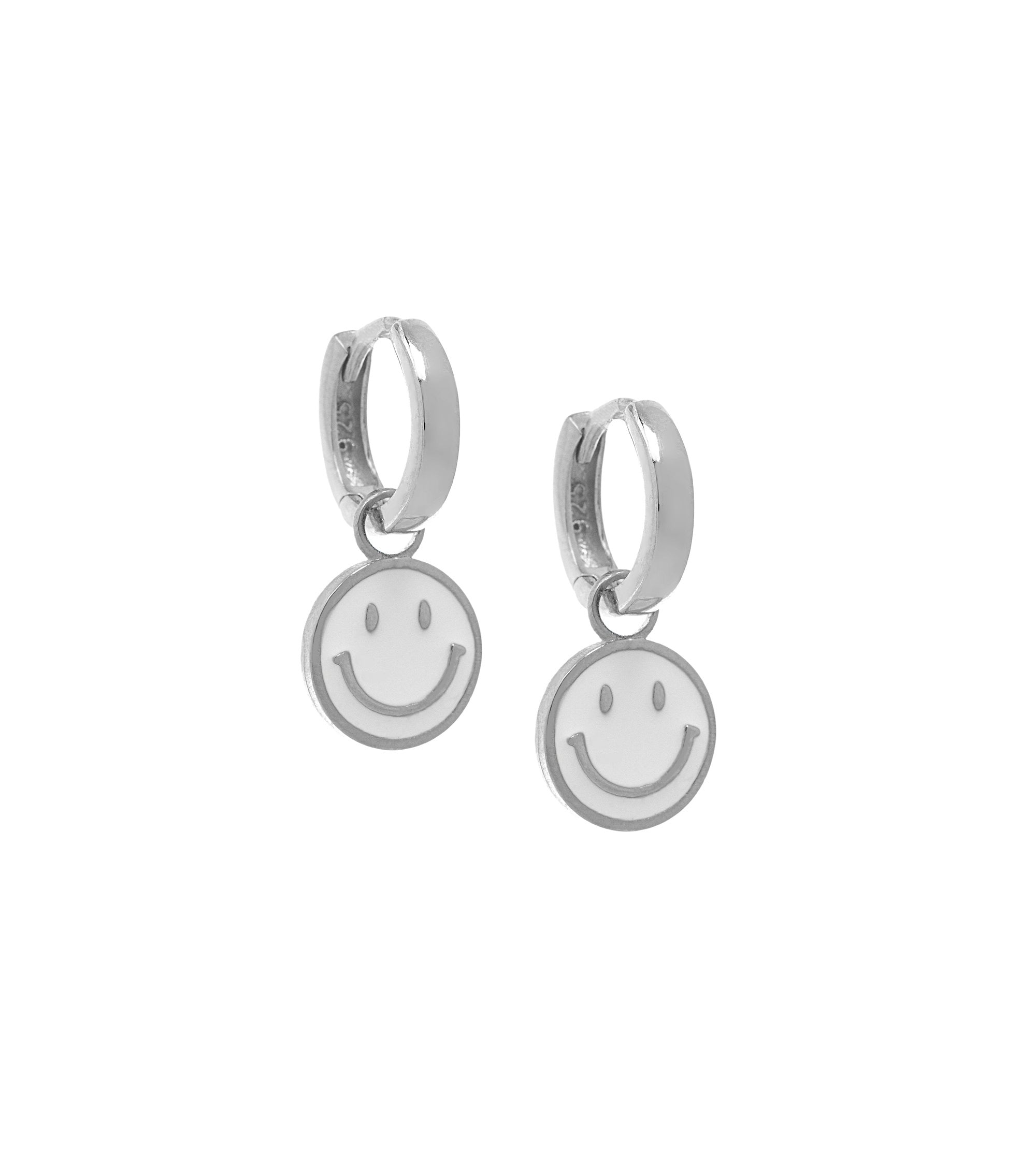 قرط دائري على شكل وجه مبتسم أبيض