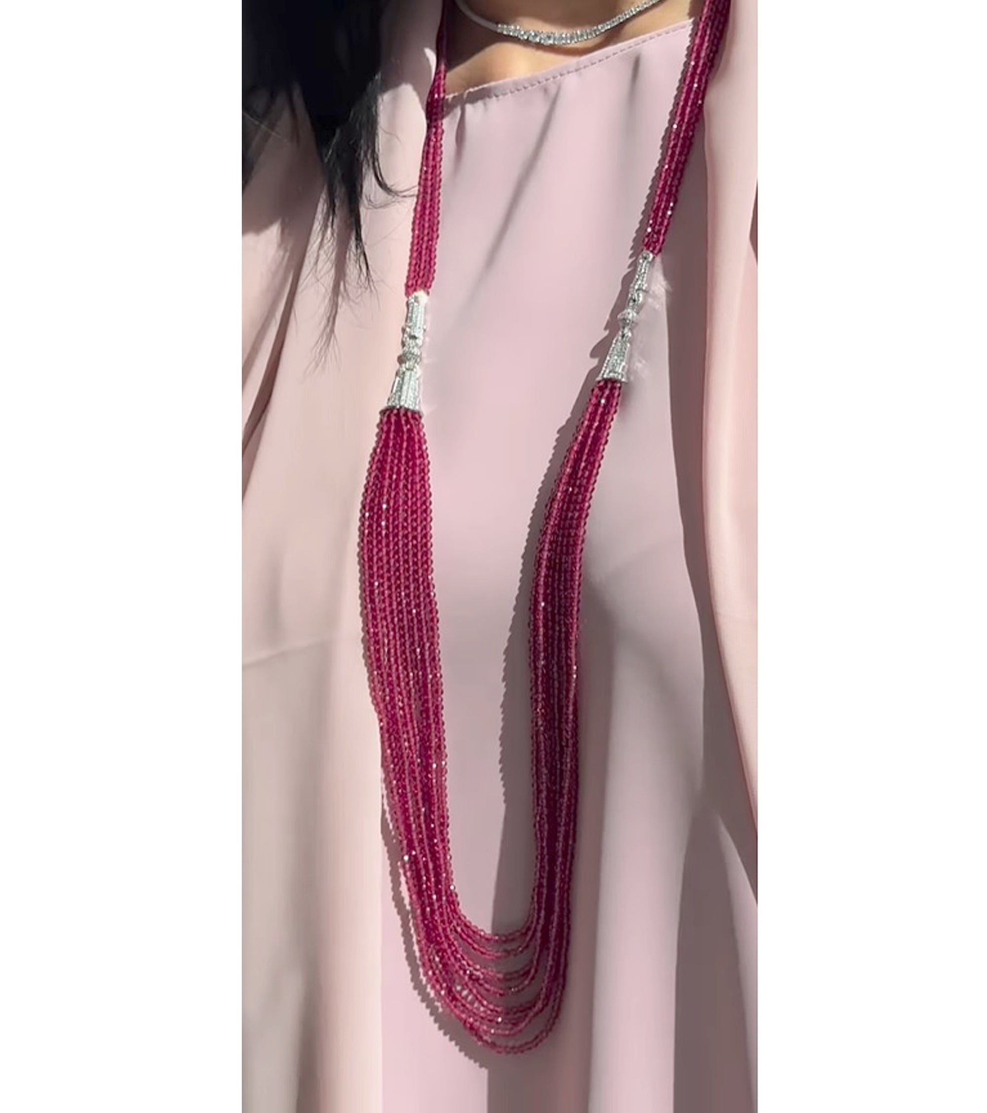قلادة طويلة من النحاس مع خرز أحمر متعدد الطبقات