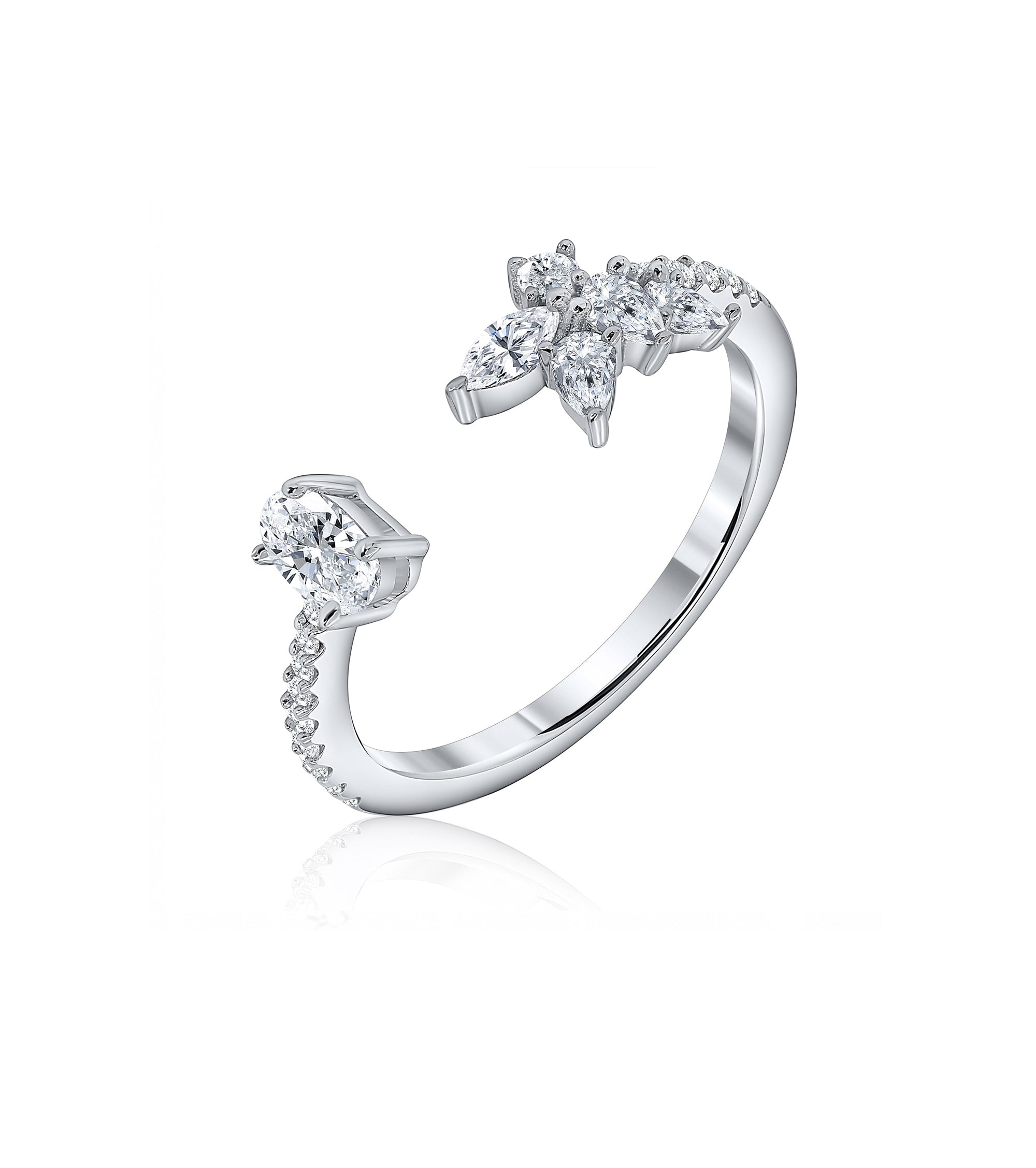 هذا الخاتم الجميل هو أفضل رفيق لسوار ليا؛ حيث تم وضع أحجار الماركيز الخاصة به بشكل مثالي لإنشاء النمط الزهري الرائع.