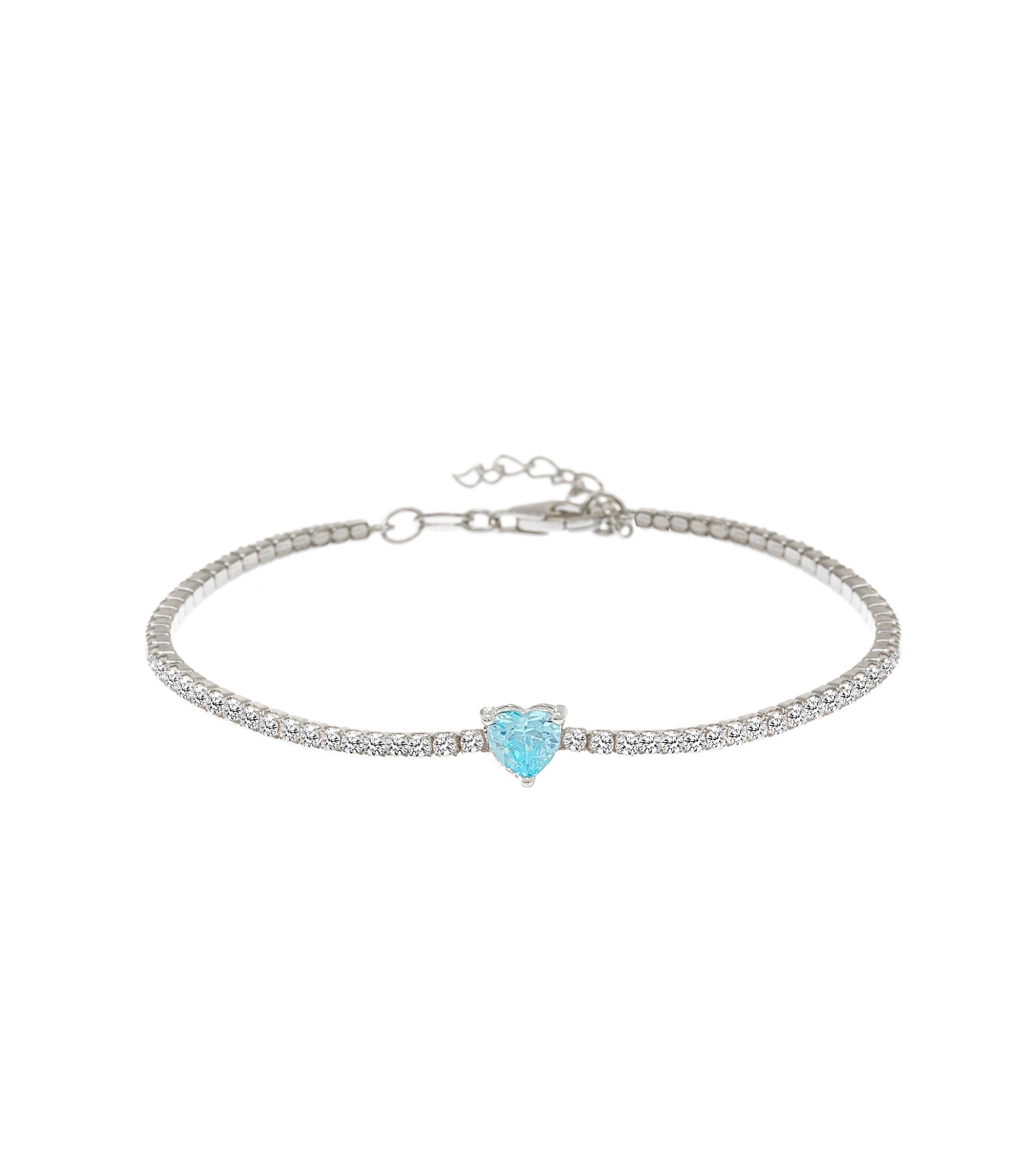 سوار تنس على شكل قلب من الزركونيوم الأزرق الفاتح