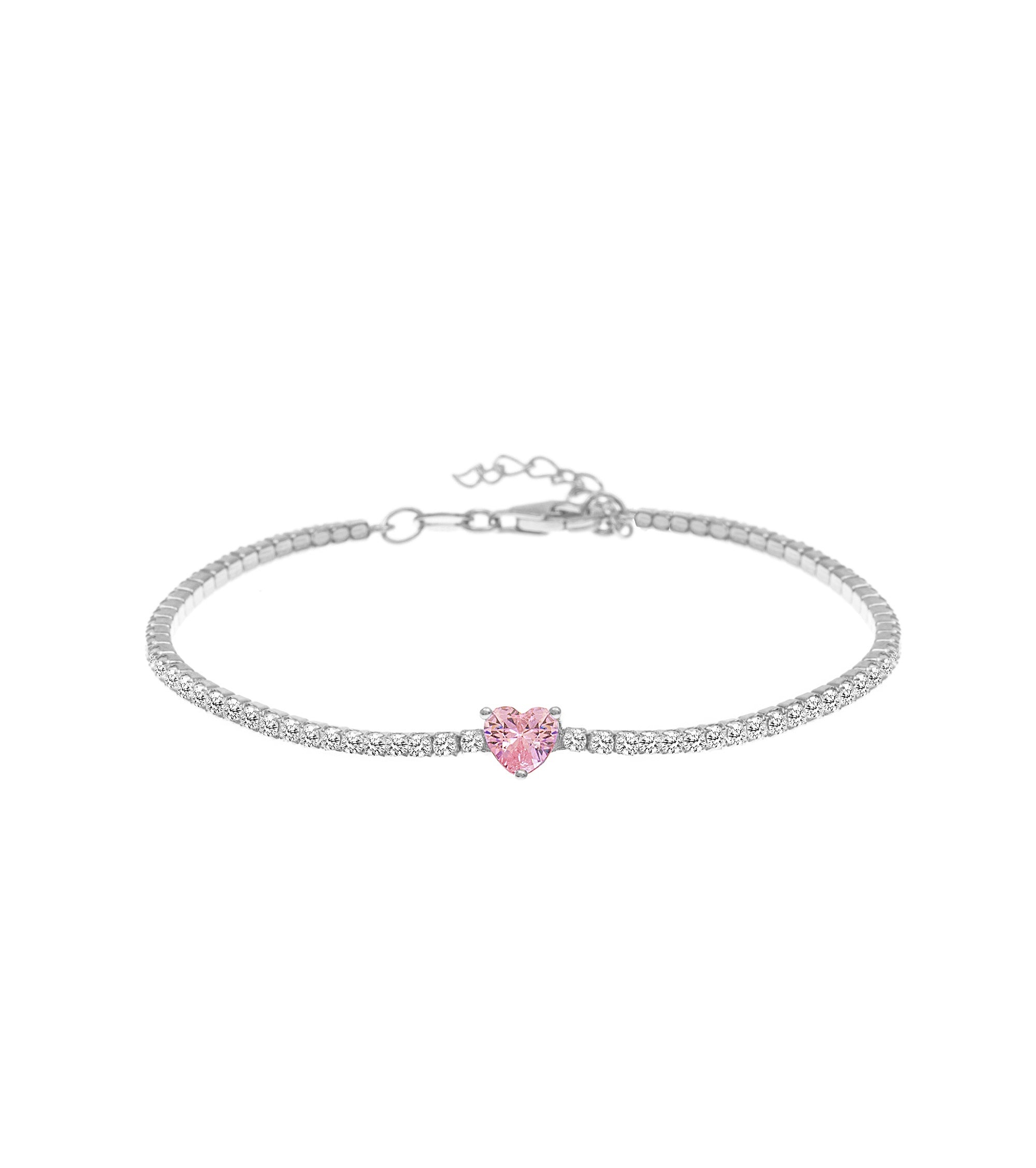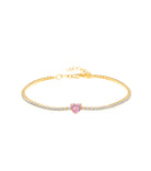 سوار تنس وردي مرصع بالزركونيوم على شكل قلب