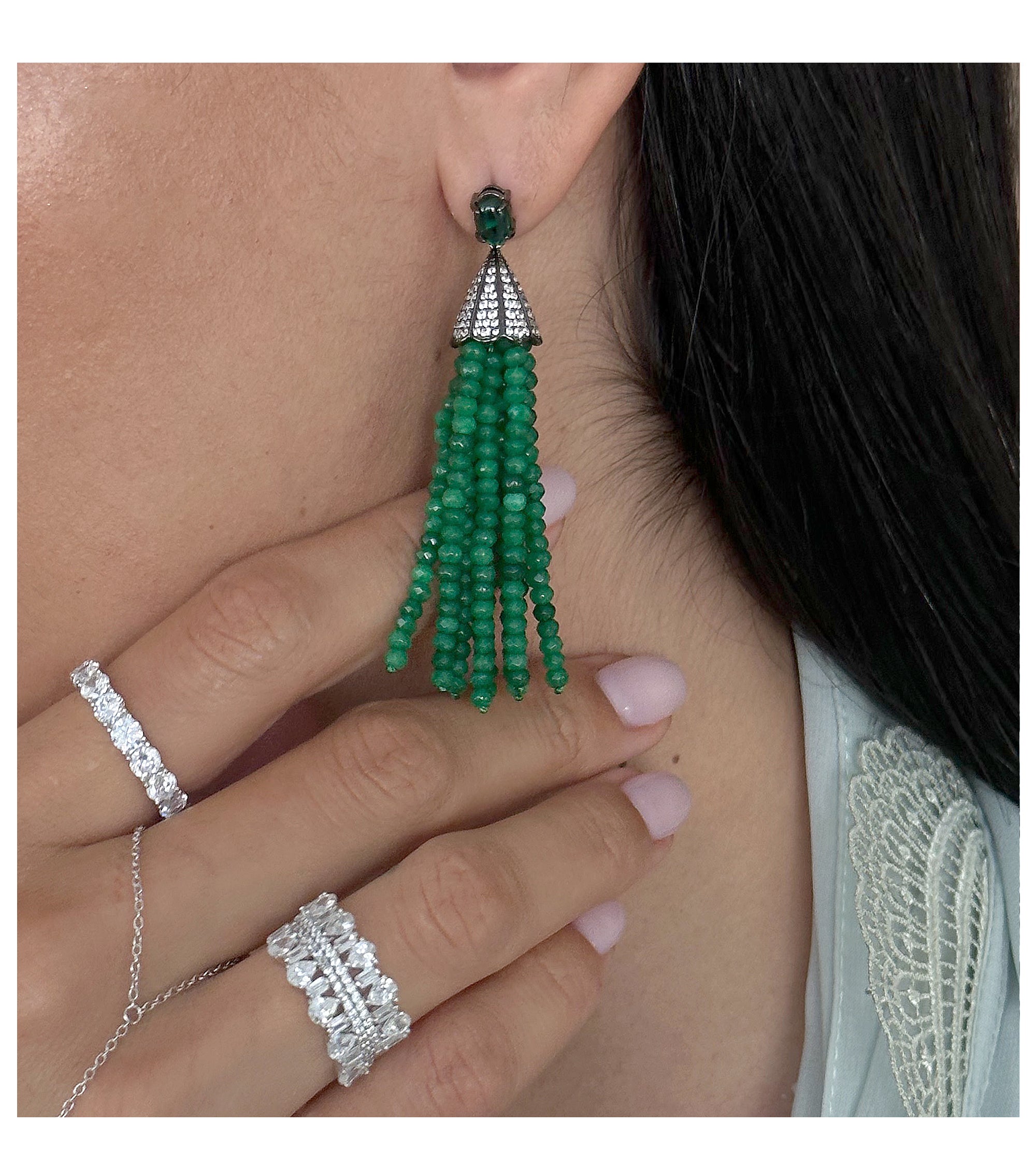 أقراط نحاسية مع عقدة فيونكة وشرابة خضراء