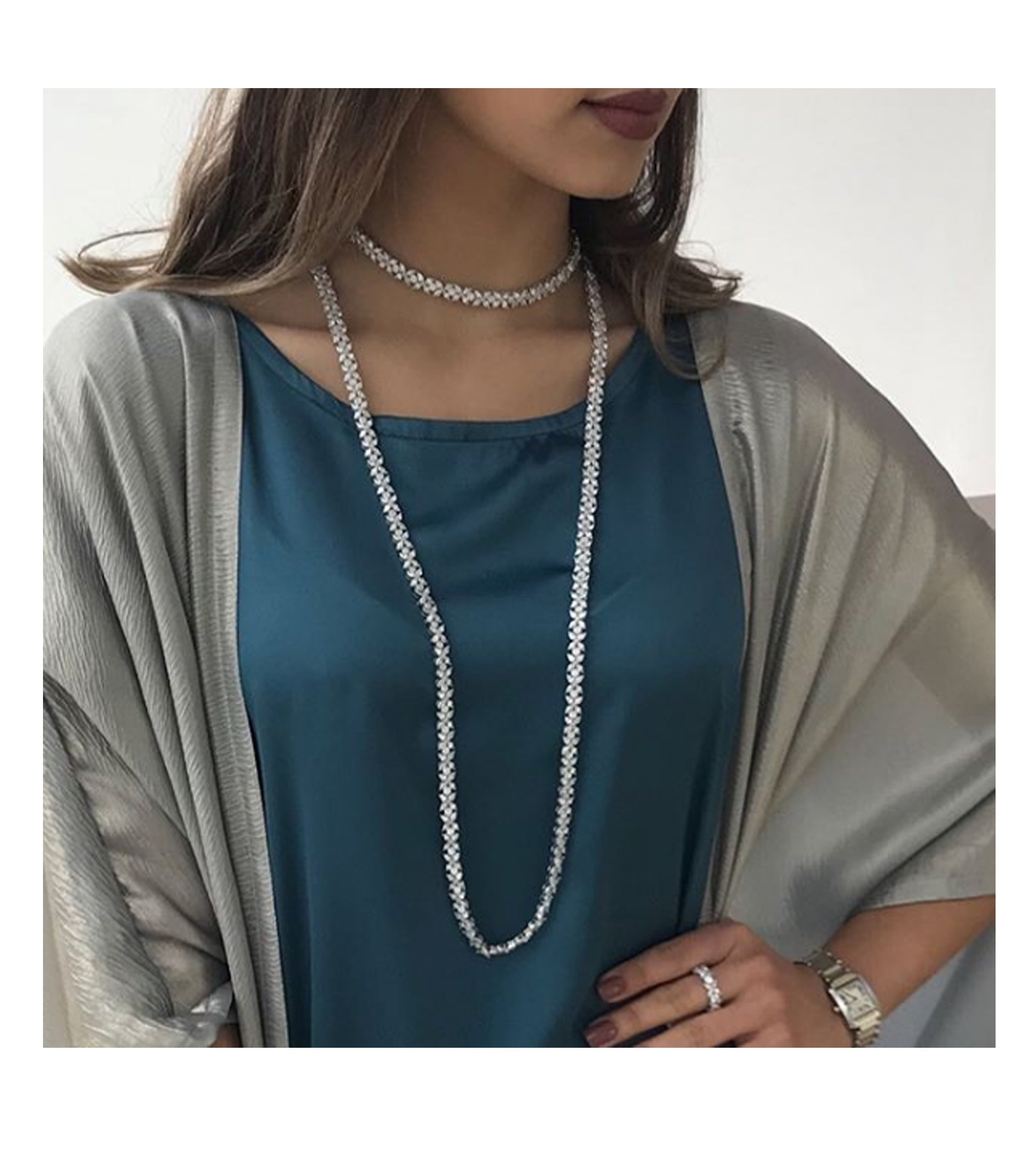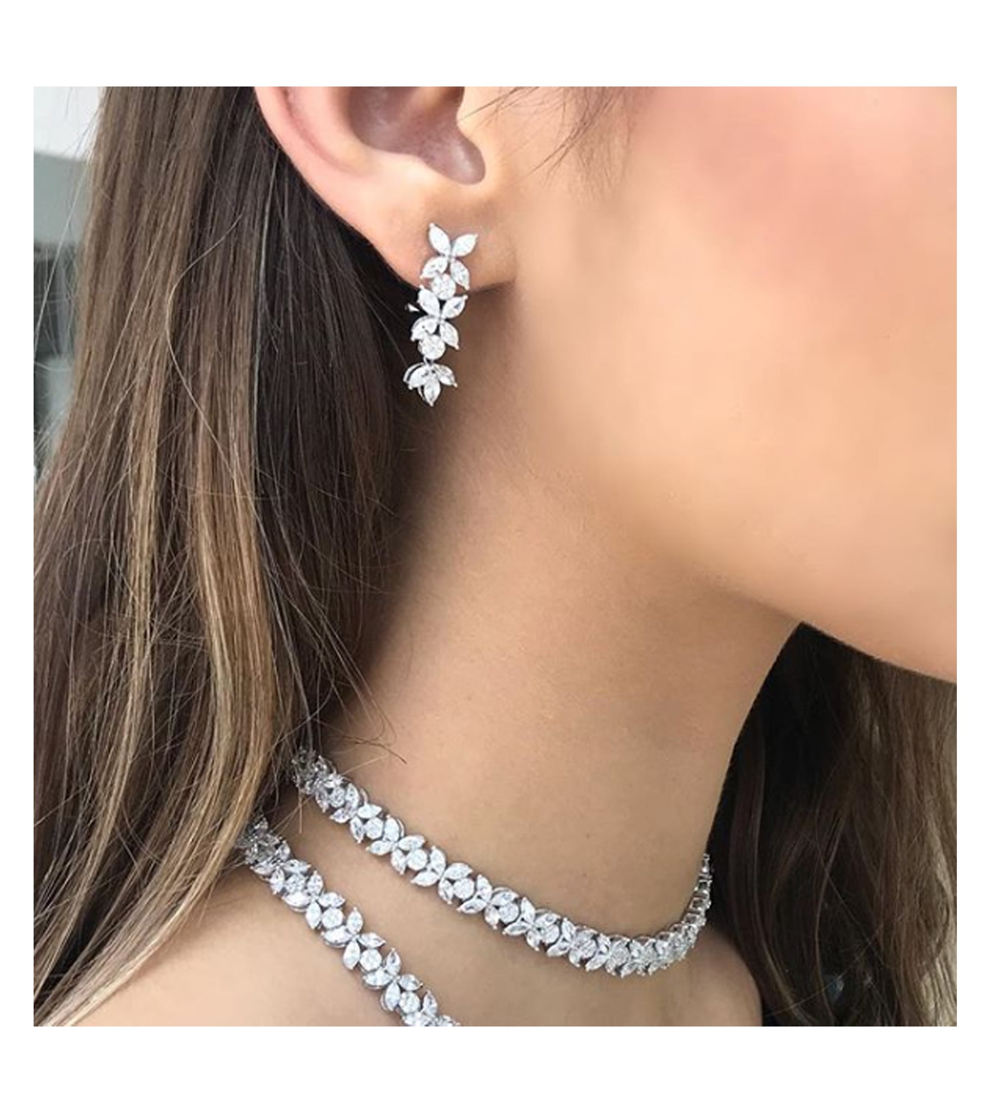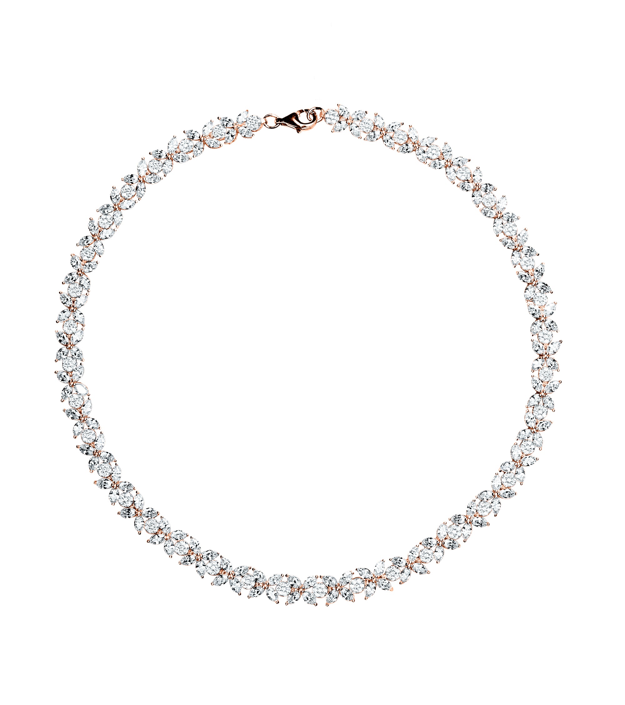Marquise and round cut zirconia encrusted skillfully on 925k silver, this choker necklace rests elegantly above the collar bone. Accompanied by matching earrings, bracelet and ring, create the most dazzling, sophisticated ensemble for your special evening.
