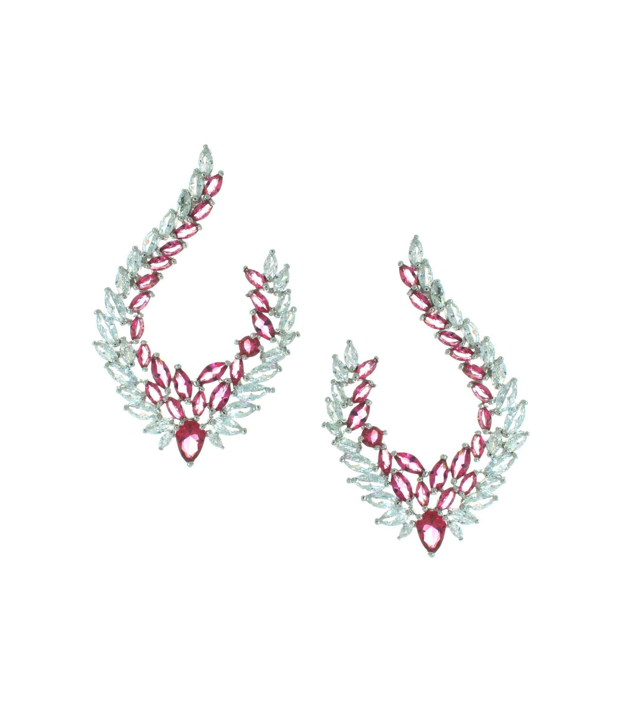Your turn to shine. These 925k sterling silver earrings adorned with marquise cut cubic zirconia will bring instant glamour and elegance to any outfit. Available in all white, white/green and white/red color options.