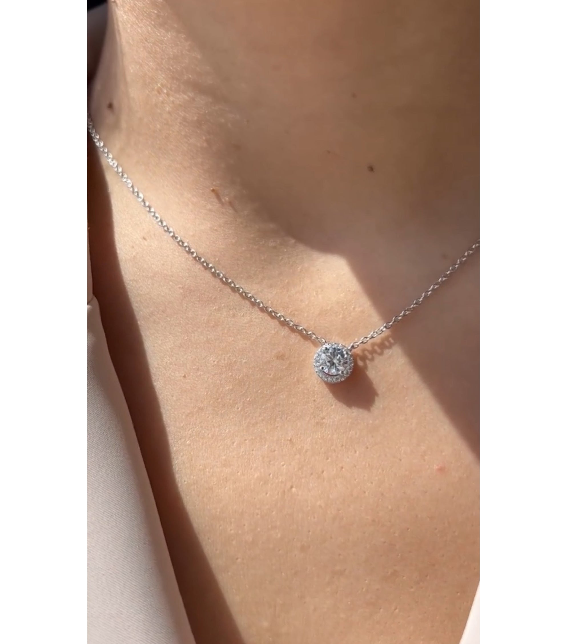 Round Halo Solitaire Necklace