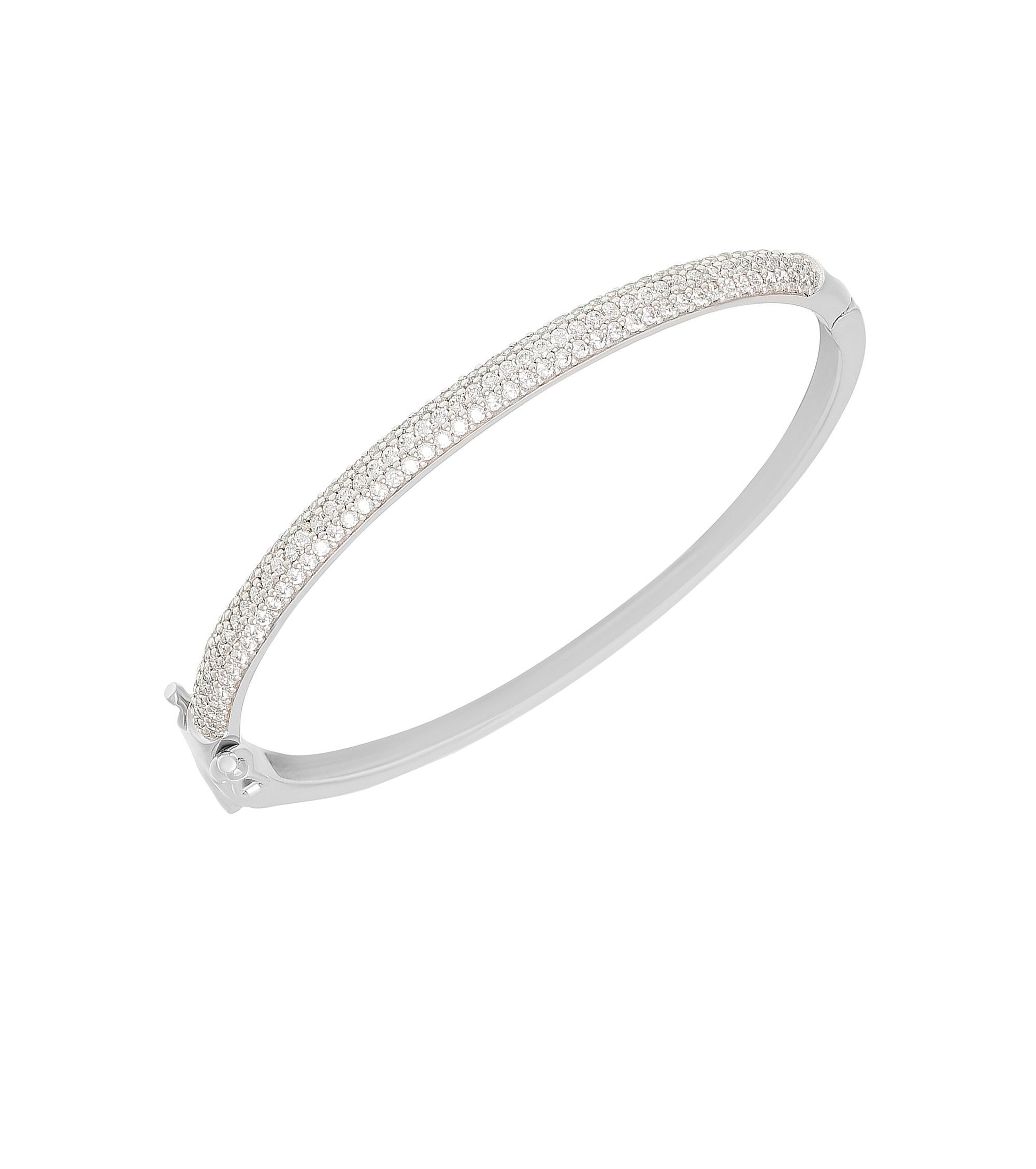 Adorned with round shape zirconia, this bangle is perfect on its own or part of a stack.