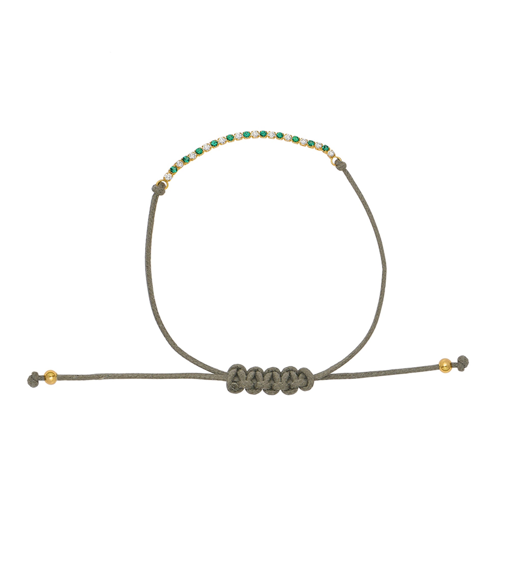Green Alternating Tennis Taupe Braided Cord Bracelet