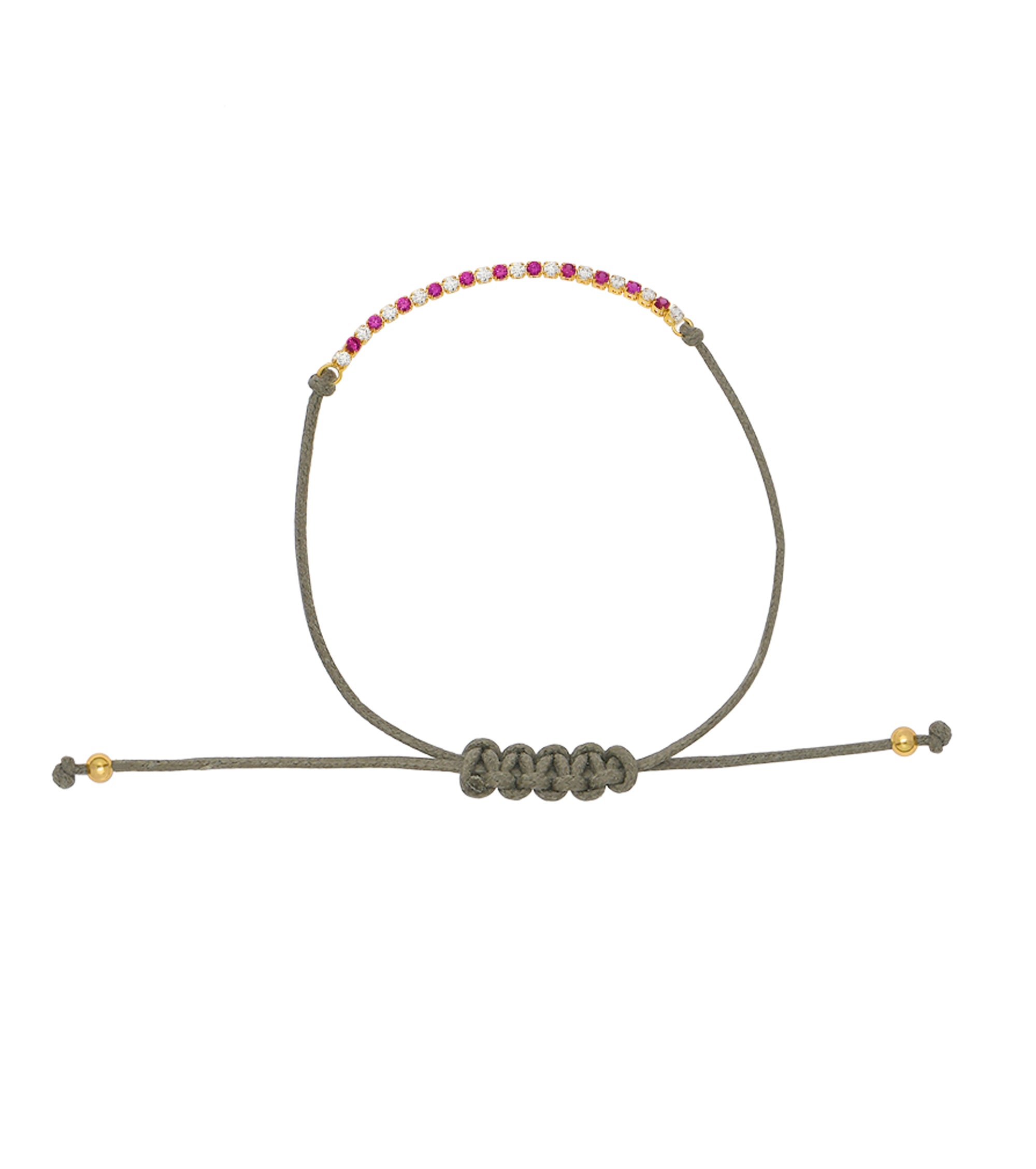 Red Alternating Tennis Taupe Braided Cord Bracelet