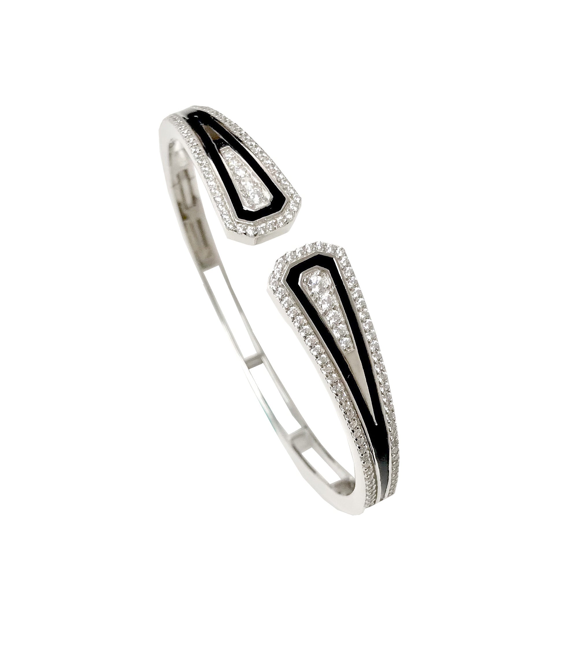 Black Enamel with CZ Cuff Bangle
