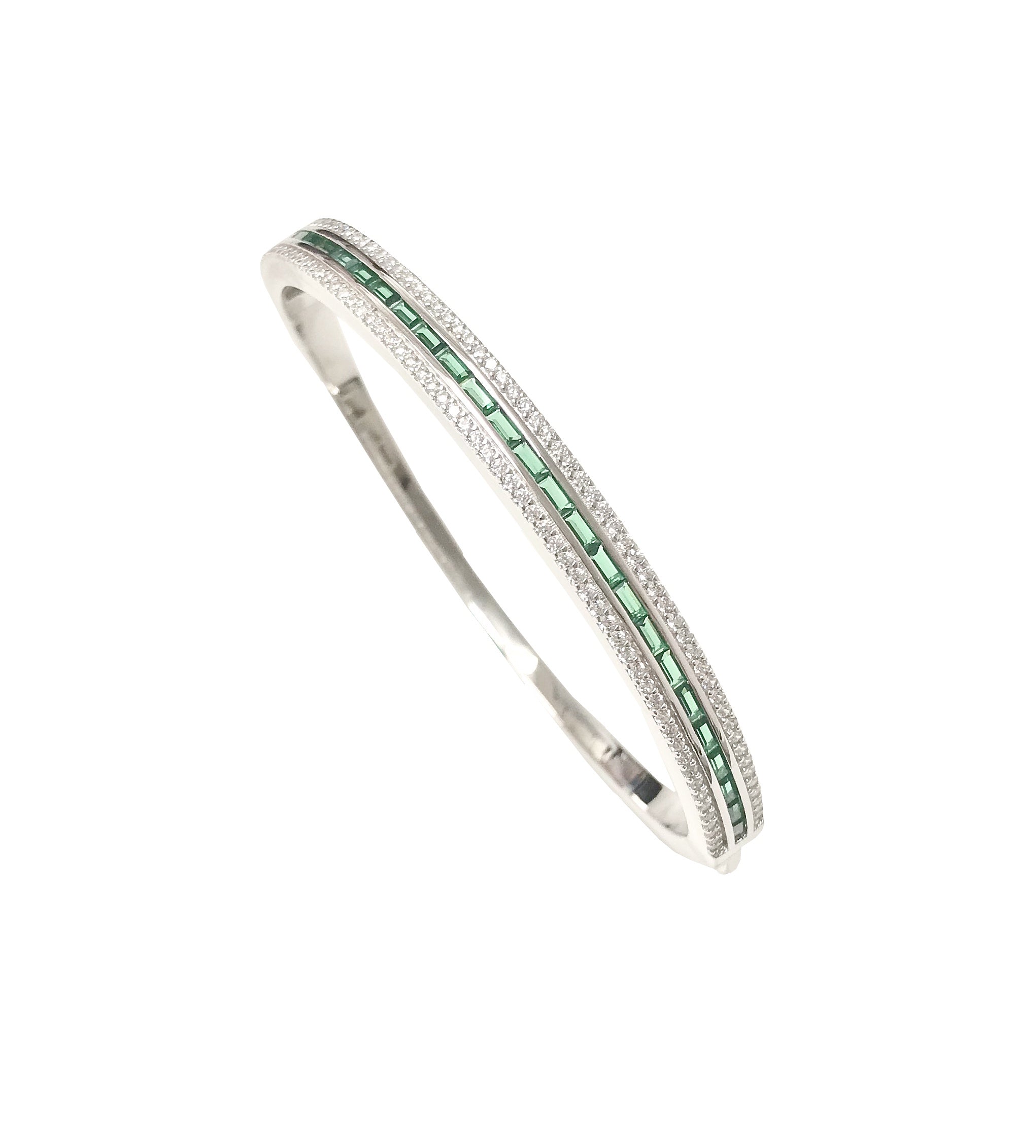 Green Baguette CZ Framed Bangle