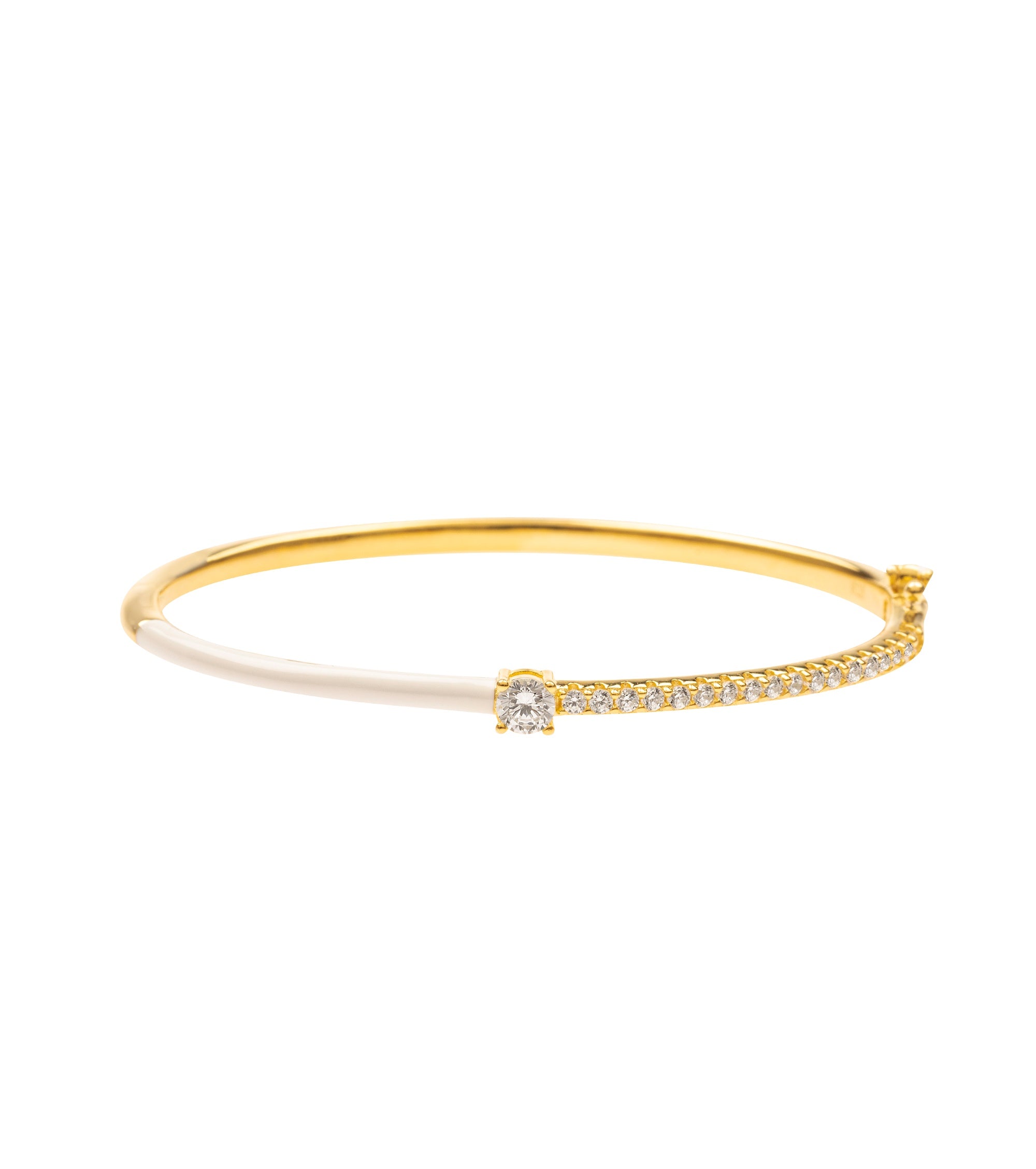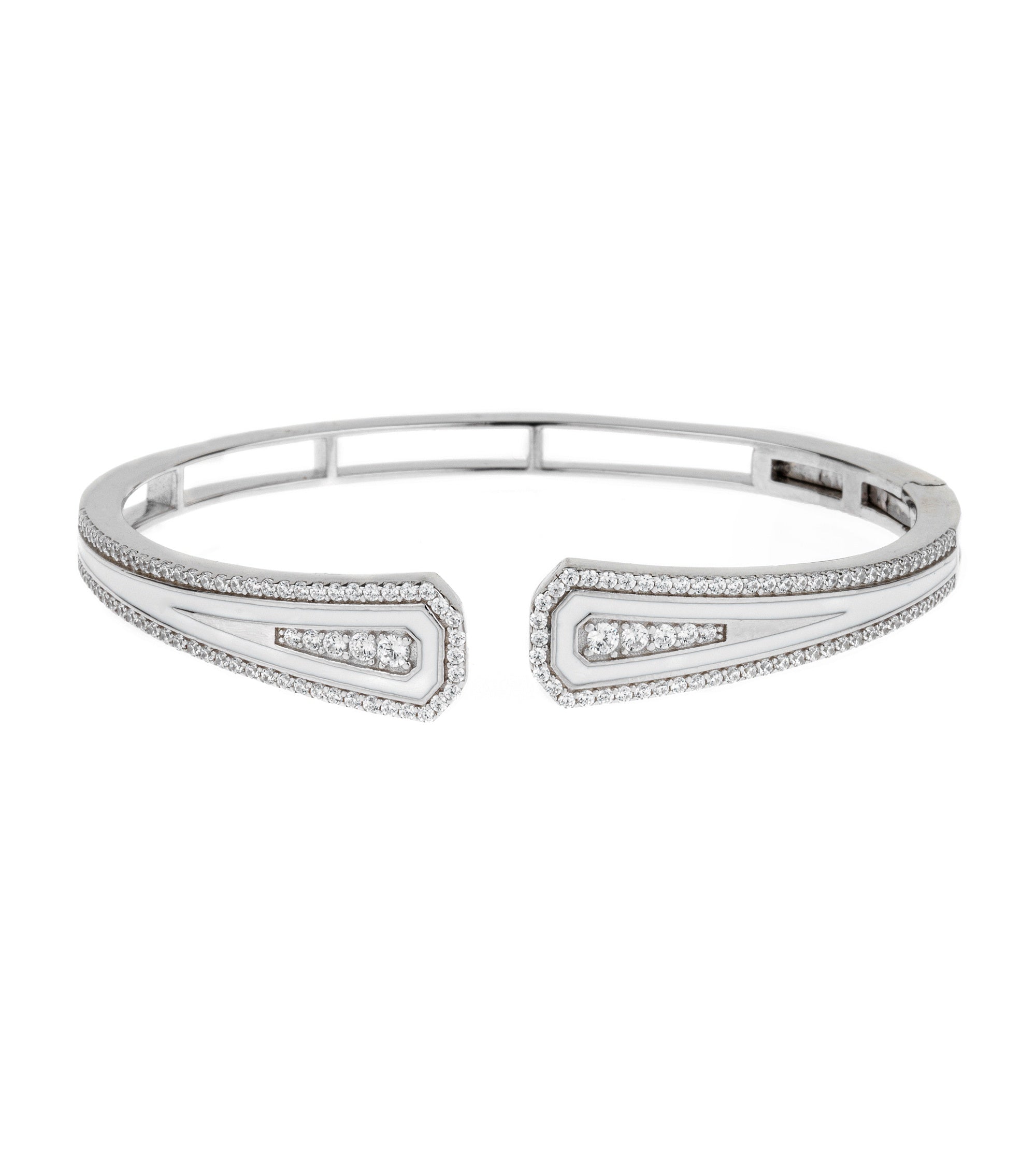 White Enamel with CZ Cuff Bangle