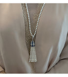 Brass Shell Pearl with Blue CZ Necklace