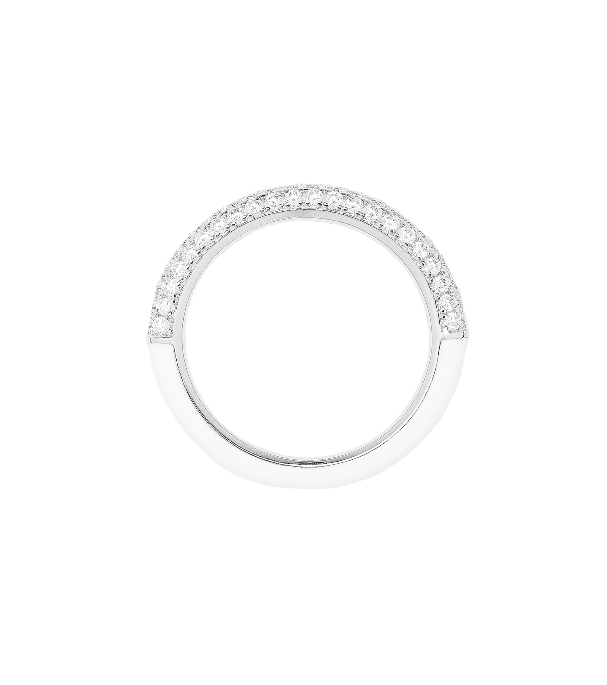 We love a pop of color! This ring has two teardrop shaped stones sitting on either sides of the band in diverse angles. While one stone is clear and simple, the other is pure white that will turn heads from a mile away.