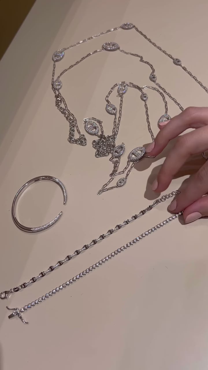 Pave Link Band plain & CZ Bracelet