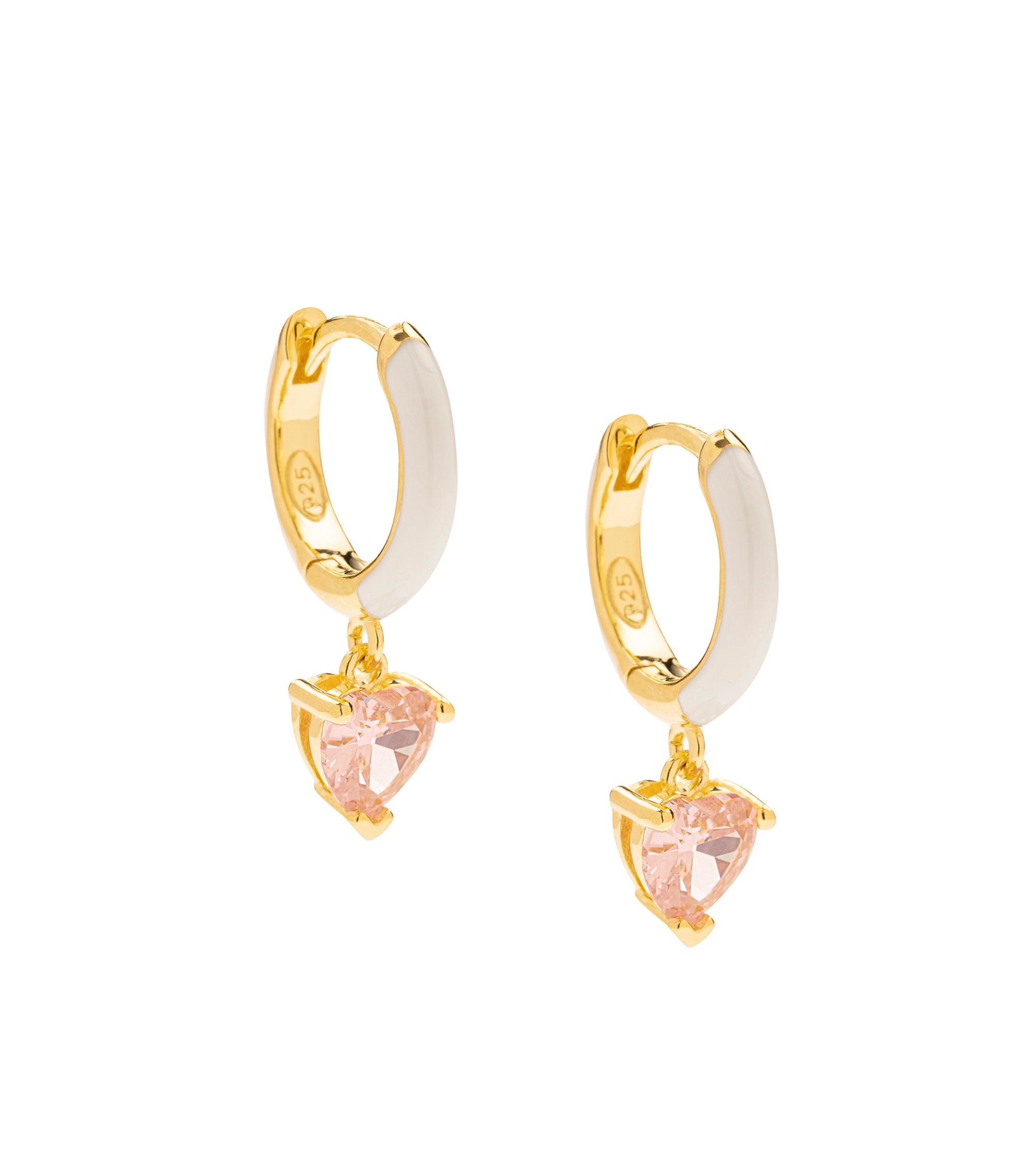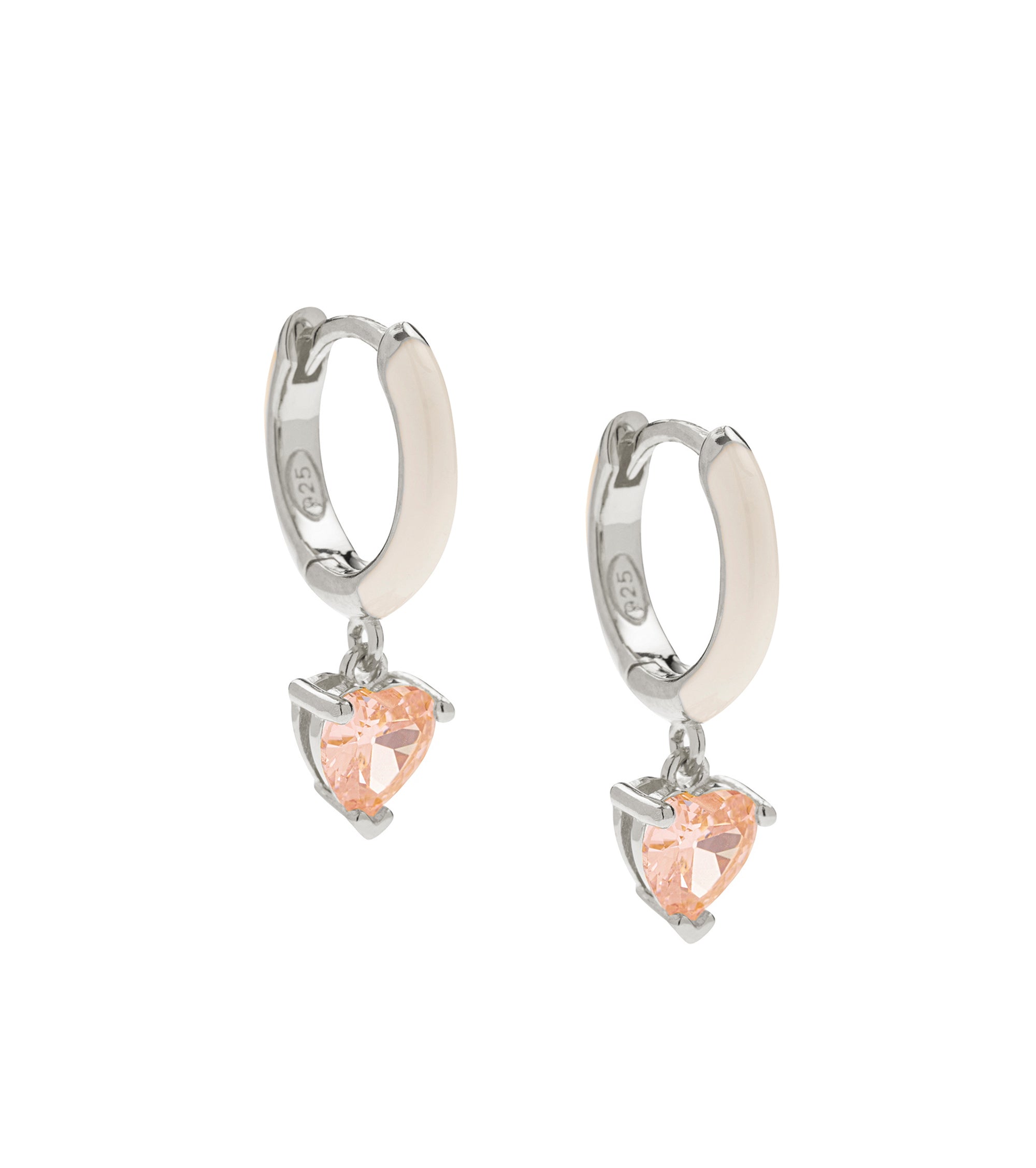 Heart pink stone white enamel hoop earring