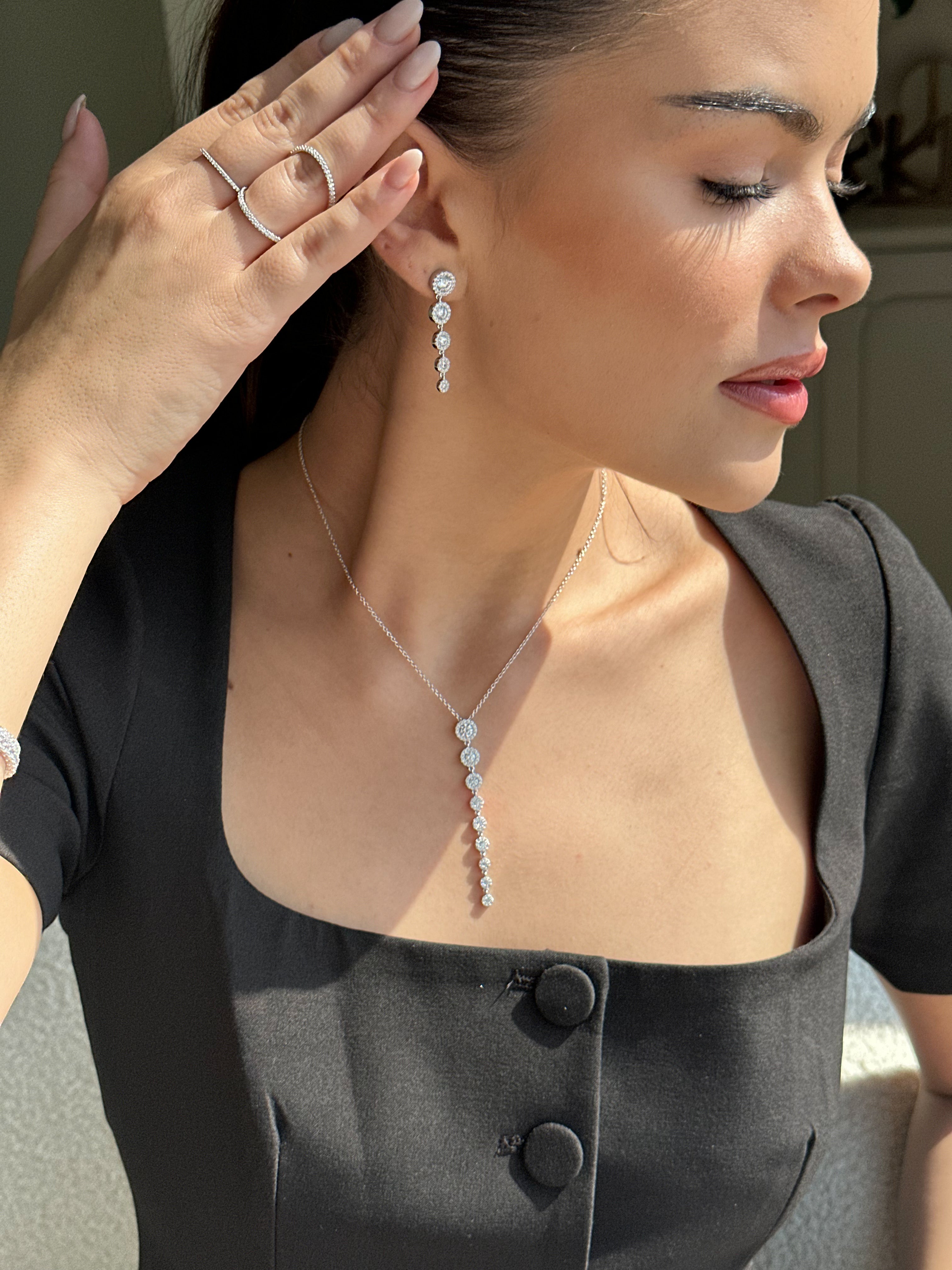 CZ Halo Drop Necklace