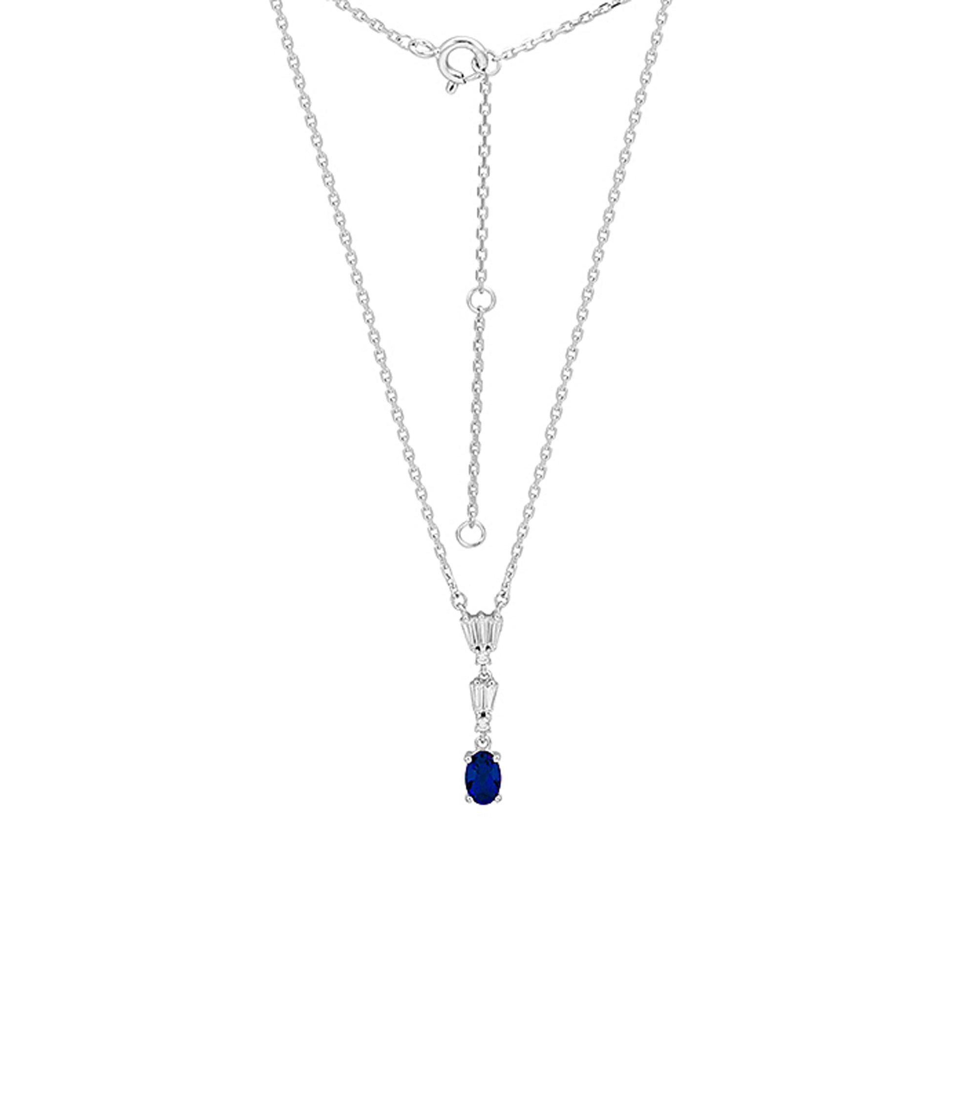 Baguette Drop with Blue CZ Oval Necklace