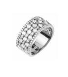 This ring comprises several round brilliants placed closely together on a thick 925k sterling silver band. It is a statement piece so you can style it alone and still feel glamorous.